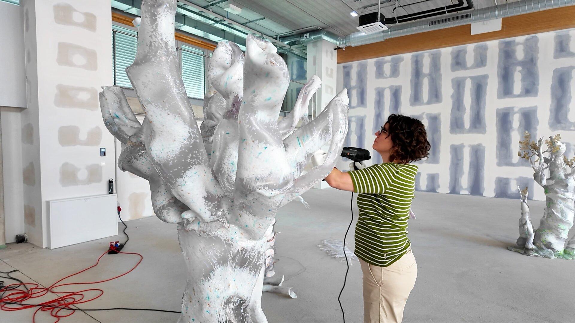 Interessierte können bei Workshops selbst Techniken zum Plastik-Recycling lernen und am Plastik-Wald mitarbeiten.